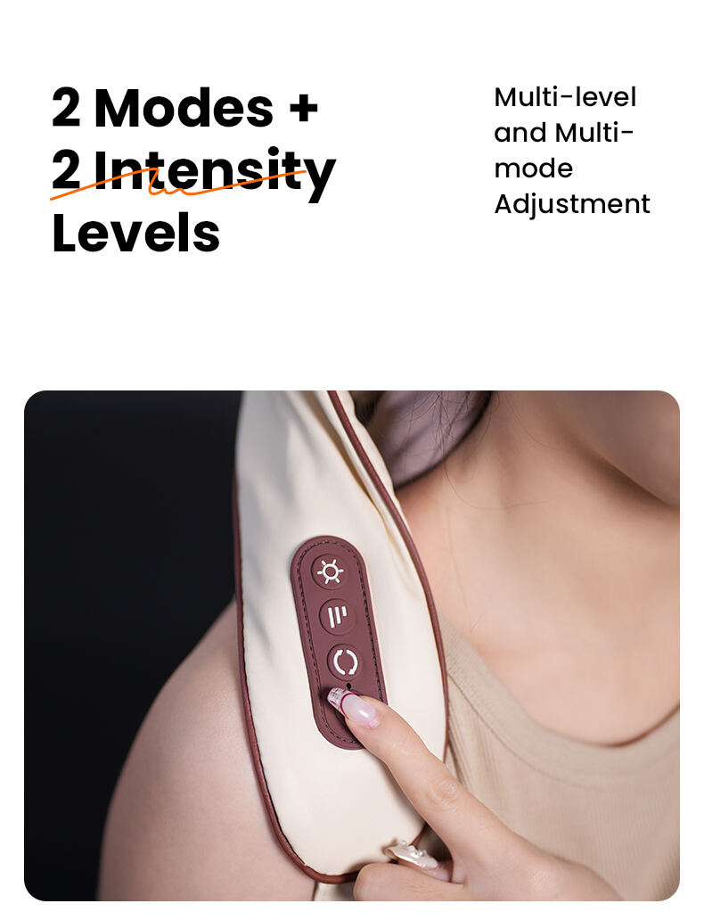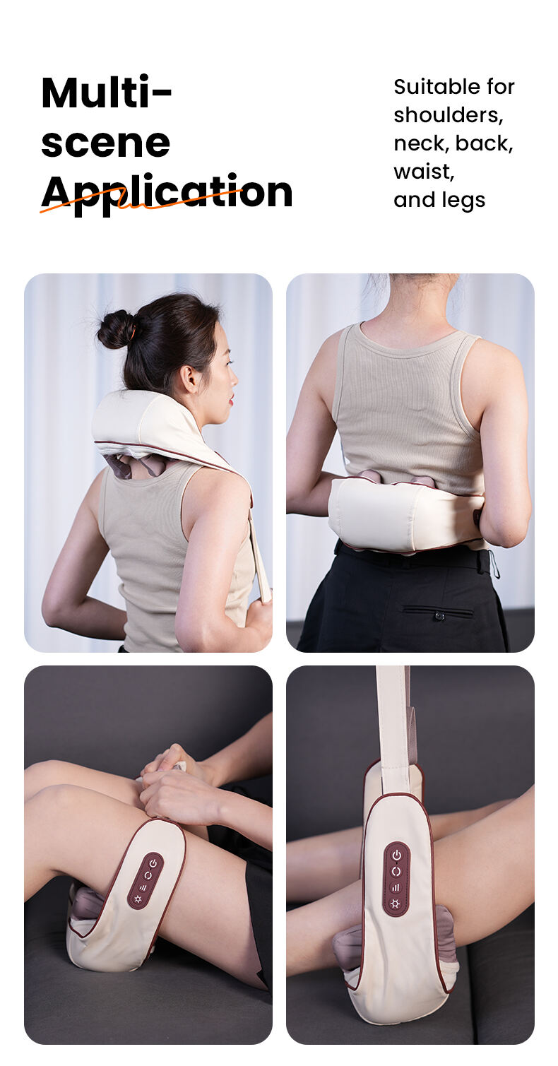 Созданный для максимального расслабления и облегчения, этот беспроводной массажер оснащен мощными массажными узлами, имитирующими руки профессионального массажиста. GUOHENG массаж глубоких тканей воздействует на ключевые зоны, такие как шея, плечи и спина, обеспечивая омолаживающий эффект прямо у вас дома.